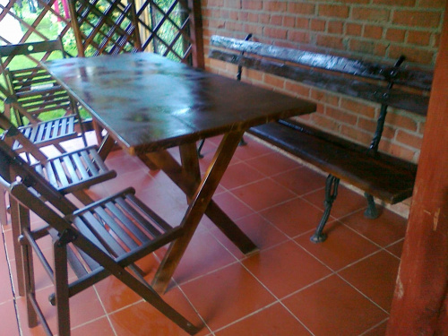 Dziewczyny kochane ja Was błagam dmuchajcie tym deszczem do mnie, chętnie przyjmę większą ilość Dopiero wczoraj się ochłodziło ale deszczu nietksiądz kropidłem więcej kropi.Susza okropna  Pati,Iwonko może kiedyś dojrzejędo założenia własnego wątku,na razie musiałby być pod tytułem -jeden wielki bajzel .Po prostu nie daję rady -na razie ogród kwiatowy czeka Może po niedzieli coś zacznę tam robić a jest duużo pracy jeszcze. Na razie były na tapecie truskawki,dentysta,okulista.Uczyłam się malowania sprężarką Zmieniłam kolor stołu, który zrobił zimą M i odrestaurowałam ławkę.